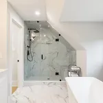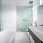 A további kényelem érdekében a szálláshely fürdőkád, walk-in zuhanykabin és külön WC kényelmét biztosítja. A fürdőszobában szárító és törölközők is biztosított.